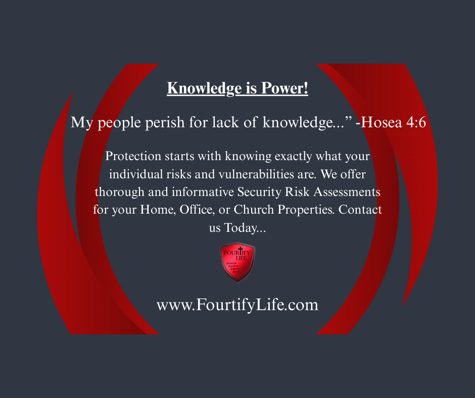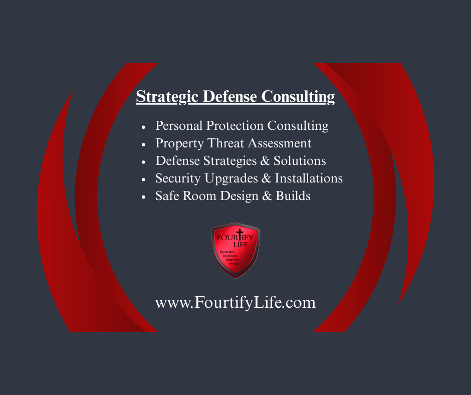We offer Home & Business Security Consulting, assessing the individual Security Risks of your Home, Office, or Church spaces. Fortifying you with Knowledgeable Professional Information & Insight to help you fortify your space and life in proactive protection from a variety of concerns and dangers… So, you can have peace of mind, knowing you have taken any necessary precautions, and leaving the rest in God’s hands. Contact us Today.